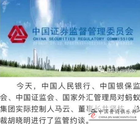 因为在11月2日,证监会官网发布了一则公告:“今天,中国人民银行、中国银保监会、中国证监会、国家外汇管理局对蚂蚁集团实际控制人马云、董事长井贤栋、总裁胡晓明进行了监管约谈。”