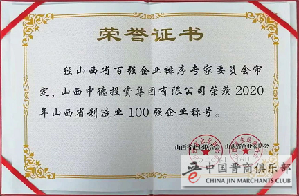 11月6日,在2020年山西企业家活动日暨山西企联第28次年会及2020年山西企业100强发布会上,中德集团公司荣获多项荣誉:被评为“2019年度功勋企业”、“2020年山西省100强企业”、“2020年山西省制造业100强企业”、“2019年度‘创新驱动型’企业”,集团董事长程田青荣膺“2019年度功勋企业家”荣誉称号。充分彰显了近年来,中德集团通过“两选三新”(“两选”即选人才、选先进装备;“三新”是产品技术创新、市场营销模式创新、经营管理模式创新)提升硬实力,高效运营提升企业服务价值所获得的优异业绩和卓越声誉。