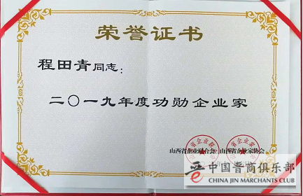 董事长程田青荣膺“2019年度功勋企业家”荣誉称号