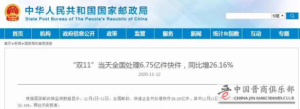 根据国家邮政局监测数据显示,11月1日-11日,全国邮政、快递企业共处理快件39.65亿件,其中11月11日当天共处理快件6.75亿件,同比增长26.16%,再创历史新高。
