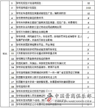 在民办中小学违规行为记分标准里可以看到,涉及举办者的违规行为情形共11种,涉及学校法人的违规行为情形共37种,涉及校长的违规行为情形共22种。