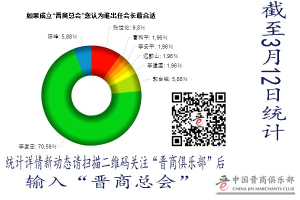 下面是截至3月12日大家对可能要成立的“晋商总会”会长人选的投票结果。