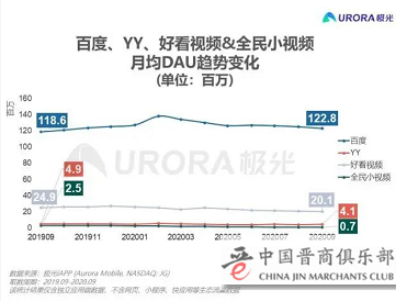 去年一年百度APP、全民小视频、好看视频,以及YY的月均DAU变化。数据/制图:极光大数据