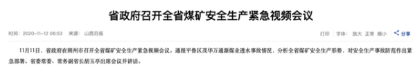 政知君注意到,就在这次反馈会议的前一天(11月11日),山西省政府在朔州市召开全省煤矿安全生产紧急视频会议,通报平鲁区茂华万通源煤业透水事故情况,分析全省煤矿安全生产形势,对安全生产事故防范作出紧急部署。