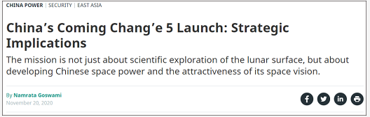 《外交学人》报道则评价称,“嫦娥五号”探月及其他一系列太空任务,赋予了了中国特殊的战略意义。