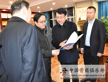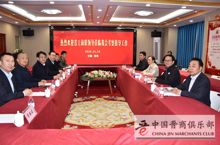11月20下午,中共河南省委统战部副部长、省工商联党组书记庄建球,省工商联副主席周新萍,二级巡视员陈占亭以及经联部张明一行莅临河南省晋商会(中国晋商俱乐部联合发起机构)考察调研、指导商会工作。河南省晋商会会长郭启文,执行会长李全勇,常务副会长贾小波、李金泉,秘书长张佛廷,党支部副书记韩建华,副秘书长崔丽媛等陪同参加了调研座谈活动。