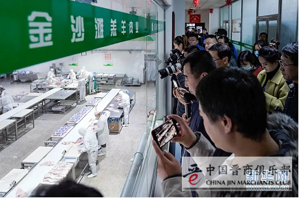 ▲参加第十五届全国网络媒体山西行活动的媒体记者在怀仁市金沙滩羔羊肉业股份有限公司了解羔羊肉生产加工情况。