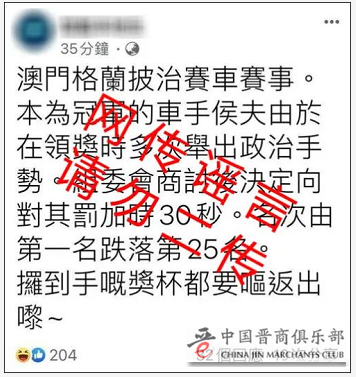 来自台湾地区的车手、曾代表中华台北队多次参加国际大型赛车比赛的林帛亨就委婉地表示,“果然如同转播时预料,一定会被上诉,现在上诉成功……罗布·赫夫要凑澳门十胜整数也要再等以后了。”