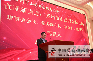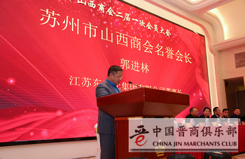 最后,他说到,将团结带领广大会员,继续弘扬晋商精神,不断提升企业形象,为苏晋两地的经济建设和社会发展作出新的贡献。