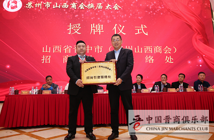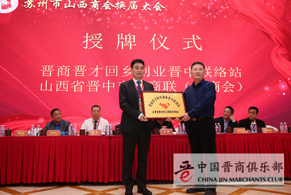 会议宣读了关于授予江苏东壹元集团有限公司董事长、苏州市总商会副会长郭进林为商会名誉会长的决定并授牌,审议通过聘任黄凯同志为商会秘书长并颁发聘书;会上举行了授牌仪式,由山西省晋中市工商联授予商会-山西省晋中市(苏州山西商会)招商引资联络处,由晋中市投资促进局授予商会-晋商晋才回乡创业晋中联络站;会上,苏州市山西商会与苏州市川渝商会、苏州市陕西商会、苏州市芜湖商会签订了友好商会协议;