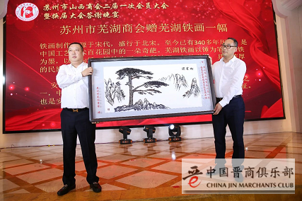 苏州市芜湖商会向苏州市山西商会赠送了芜湖铁画一幅