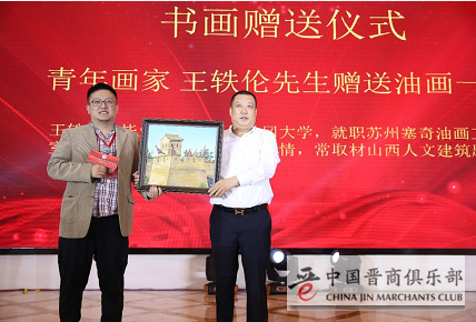 青年画家王轶伦向商会赠送油画一幅