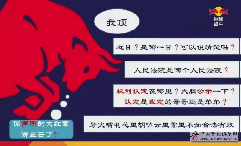 此外,《声明》还指出,对方“无视协议、法律规定、政府登记文件、股东意愿以及仲裁机构的生效裁决,公然在合资公司经营期限届满后继续违法生产、销售红牛产品,这无疑是对法律、对政府法律文件、对契约精神、对司法权威的肆意践踏。”