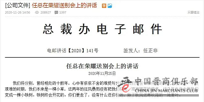 26日,华为心声社区刊出华为创始人、CEO任正非在荣耀送别会上的讲话。任正非鼓励荣耀一旦“离婚”就不要再藕断丝连,做华为最强的竞争对手,超越华为。