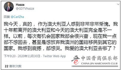 而带着浓浓失望、发出这样感慨与道歉的澳大利亚网友推特账号介绍显示,他是生活在中国多年的广东广播电视台主持人Hazza。