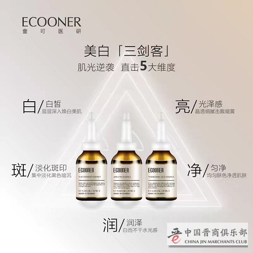 产品是塑造品牌的前提和基础,更是消费者与品牌建立情感的载体,因此好的品牌永远离不开众星捧月般的好产品,ECOONER壹可医研旗下首打的亮肤原液三剑客,正是针对亚洲人群黄种肤质容易产生的干燥、暗沉、斑点、敏感等问题而精心组合,受到了人们的青睐和追捧。