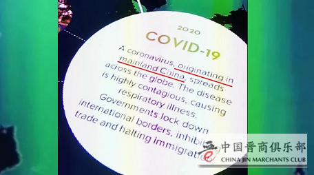 据澳媒《布里斯班时报》12月3日报道,位于西澳首府珀斯的博拉巴迪普(注:澳原住民努加族语言,意为:许多故事)博物馆,近期在“联结”展厅内举办了一场展览,其中在新冠肺炎的介绍性语言中,用英文插入语,添加“起源于中国大陆”的描述。