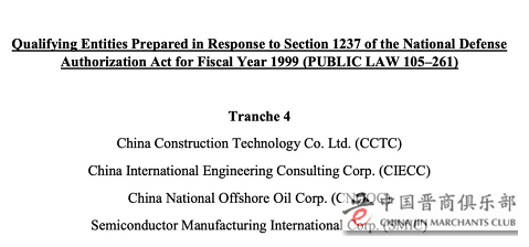 美国当地时间12月3日,美国国防部官方网站公布第四批“涉军企业”名单(参见图1),包括四家中国企业,分别为中芯国际(SH:688981)、中国海油、中国建筑和中国国际工程咨询公司。截至目前,有超过30家中国企业已经被美国认定为“涉军企业”。