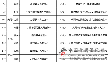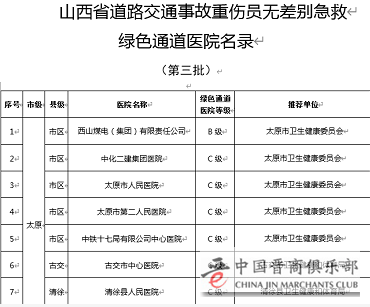 ◆ 山西省公布第三批“道路交通事故重伤员无差别急救绿色通道医院”