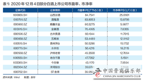 行业估值来看,Wind数据显示,2020年12月3日,全部A股市盈率(TTM,整体法)为23.15倍。在申银万国三级行业指数中,白酒以50.47倍的市盈率,在219个分行业中,位居69位,处于中上游。但白酒行业市盈率数据,低于黄酒的53.72倍、葡萄酒的60.11倍、啤酒的80.43倍。