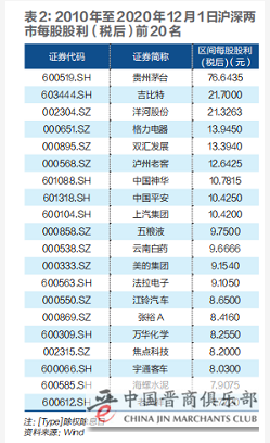 wind数据统计显示,2010年至2020年12月1日,在A股上市公司中,贵州茅台以933.84亿元的现金分红总额,位列第13位。同期,公司每股股利(税后,下同)为76.64元,高居两市榜首。