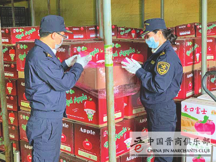临汾海关工作人员对出口泰国水果进行现场查验。崔晓农摄