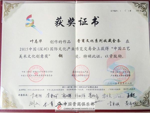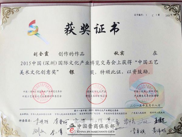 2015年在第十一届中国(深圳)国际文化产业博览交易会获得银奖。