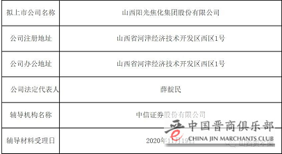 山西资本圈注意到,阳光焦化集团已于2020年11月在山西证监局进行A股首发上市申请(IPO)辅导备案登记,保荐机构为中信证券,此举意味着公司正式拉开A股IPO序幕。