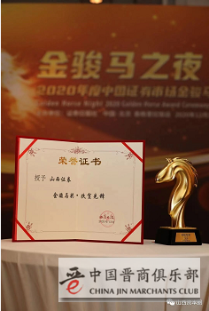 券市场金骏马奖颁奖典礼上,山西A股上市公司山西证券凭借公司在决胜脱贫攻坚工作的突出表现获颁“扶贫先锋”奖。