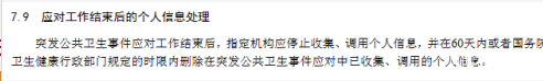据央视网报道,在疫情个人信息的存储上,今年10月征求完意见的《网络数据处理安全规范》要求,突发公共卫生事件应对工作结束后,指定机构应停止收集、调用个人信息,并在60天内或者国务院卫生健康行政部门规定的时限内删除。