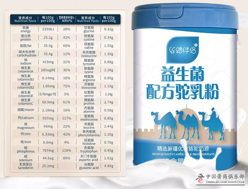 丝路伴侣骆驼奶富含蛋白质,氨基酸和免疫球蛋白,并且含有与牛奶相似的多种营养成分。但是,骆驼奶的饱和脂肪含量低于牛奶,而维生素C,B维生素,钙,镁,锌,铁和钾的含量更高。此外,骆驼奶中的脂肪是健康脂肪,包括亚油酸,长链脂肪酸和不饱和脂肪酸,对您的心脏和大脑健康至关重要。骆驼奶中的磷也很高,这是另一种有助于骨骼健康的矿物质,可惜西方饮食中没有这种矿物质。