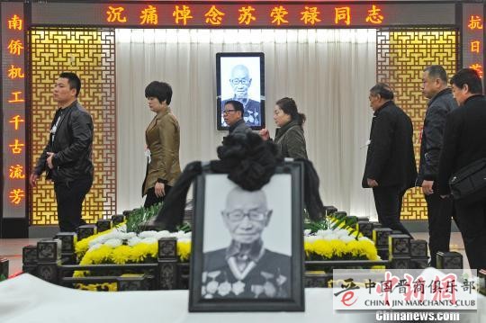 白菊盏盏、哀乐低回,在庄严、哀伤的气氛中,身穿黑色正装的人们低头默哀,饮泣声不断。18日,山西最后一名南侨机工苏荣禄的葬礼在山西省太原市龙山殡仪馆举行,海内外各界人士以发唁电、敬献挽联、默哀等多种形式悼念这位抗日英雄。