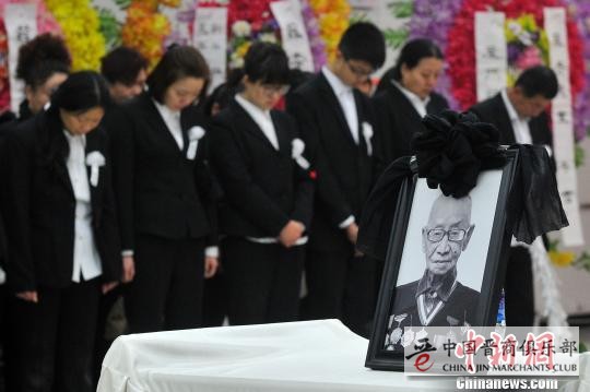 18日,山西最后一名南侨机工苏荣禄的葬礼在山西省太原市龙山殡仪馆举办,海内外各界人士以发唁电、敬献挽联、默哀等多种形式悼念这位抗日英雄。图为苏荣禄的亲人们。