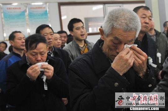 在司仪的指挥下,人们摘下帽子,低头默哀,排成一排,向苏荣禄的遗体鞠躬、告别。