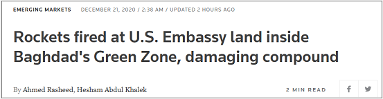 值得注意的是,针对这次发生在“绿区”的火箭弹袭击,由伊朗支持的伊拉克什叶派准军事团体“真主党旅”也发声明进行了谴责。