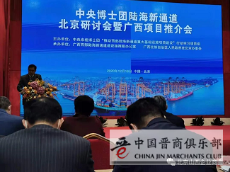 12月18日,北京山西企业商会(中国晋商俱乐部联合发起机构)应邀参加中央博士团陆海新通道北京研讨会暨广西项目推介会。驻会副会长邢秀乔、副会长单位北京华采集团副总付刚、理事单位北京瑶池宜人医学研究院院长黄振勇参加。