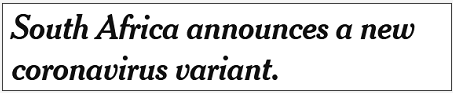 《纽约时报》18日报道:南非发现新冠病毒变体