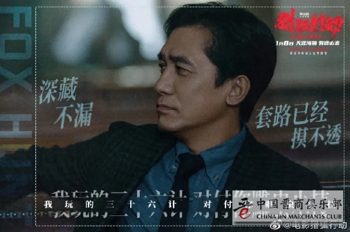 梁朝伟化身“红通”经济犯罪嫌疑人,身着蓝色格纹西装文质彬彬,眼神中却透出一丝阴狠,犹如一只残忍冷酷的狐狸。嘴角的狡诈微笑,更是令人不寒而栗。