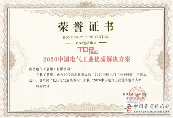 自1997年进入中国市场以来,海格电气致力于为中国市场带来全球领先的智能化配电解决方案及高效服务,以专业的产品研发能力、多领域拓展能力、灵活的电气解决方案,助力中国建筑电气行业高速发展,正是这份对行业的匠心投入,让海格电气在此次高峰论坛荣获“2020电气工业优秀解决方案”。