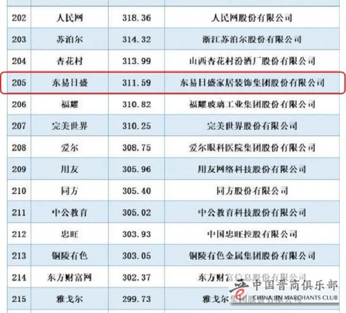 三、东易日盛品牌价值荣登中国品牌价值500强榜单第205位