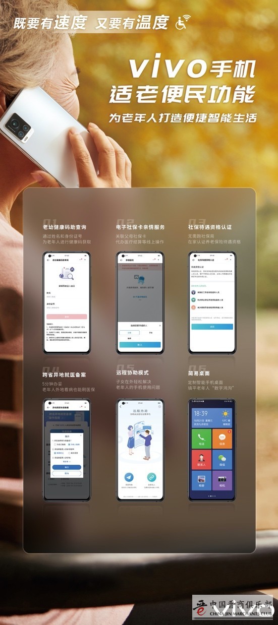 作为一家以极致产品驱动,以智能终端和智慧服务为核心的科技公司,vivo面向全球30+个国家和地区的3.7亿+用户提供优质产品和服务。未来vivo计划将Jovi智能终端语音助手与适老化技术结合,优化内容朗读、Jovi语音提示主要操作场景等功能,丰富以老年用户体验为导向的应用软件界面交互设计。同时,vivo将兼顾老年人上网体验和用网安全,增加智能终端相关应用的“关怀模式”、“长辈模式”,并将无障碍改造纳入日常更新维护。vivo将持续洞察老年人需求,按照国家政策适老化要求推动vivo智能终端持续优化升级,帮助老年人更好地融入智能化、数字化时代。