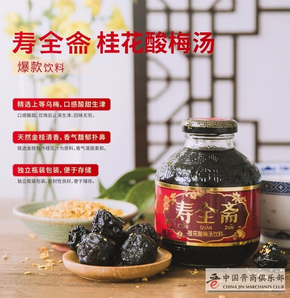 2018年寿全斋推出桂花酸梅汤,上市当年即被上海市饮品行业协会评为“2018年值得品尝的爆款饮品”。凭借桂花香气的江南风味,以及带有福寿纹、回纹等中国传统元素的外观设计,迅速成为酸梅汤代表饮品。酸梅汤是中国传统草本植物饮料的经典代表,虽属于小品类,但是消费场景涵盖了消暑解渴、佐餐解腻。寿全斋推出酸梅汤正是看中了该品在餐饮场景、国人饮食习惯上的良好认知基础,为进军餐饮渠道布局。