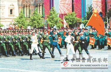 仪态庄严,步伐坚定。旗手高擎的五星红旗迎风招展。石砖上的足音整齐划一,宣告着中国军人维护和平的铿锵誓言——