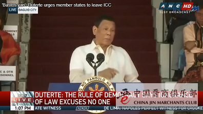 据“ABS-CBN”报道,菲律宾总统府早前表示,国际(刑事)法院如果要调查菲律宾打击毒品行动的话,是在浪费资源,并指出“ICC对于菲律宾没有管辖权。一年前,菲律宾就从ICC退出了。”