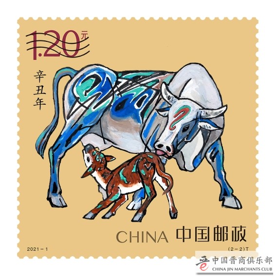 《辛丑年》特种邮票是中国生肖邮票序列第四轮中的第六套,由著名画家姚钟华先生创作。其中,第一枚名为“奋发图强”,描绘了雄壮有力、一往无前的奔牛形象。公牛四蹄扬起,昂首向前,目光炯炯,表达出不畏艰险、砥砺前行,为实现中华民族伟大复兴而努力奋斗的寓意。第二枚名为“牛年大吉”,通过大牛与小牛舐犊情深的温馨画面,向全国人民传递家庭兴旺和谐、团圆美满的美好祝愿。