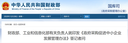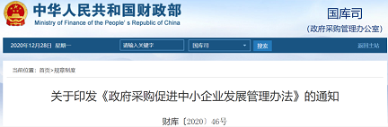 刚刚财政部、工业和信息化部出台《政府采购促进中小企业发展管理办法》,2021年1月1日起施行。