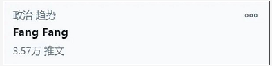共和党人为特朗普谋划的“战争”似乎一触即发,然而,美媒此前炒作的所谓“中国女间谍方芳(Fang Fang)”也一并冲上推特美国区政治趋势榜。
