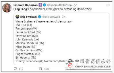 “如果美国参议员是‘民主的敌人’,那方芳又是什么意思呢?”