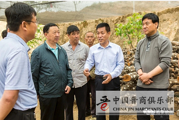 尉文龙副市长(右一)、政协吕梁市委员会郝金光副主席(右五)、李双会县长(右二)在罗家山调研