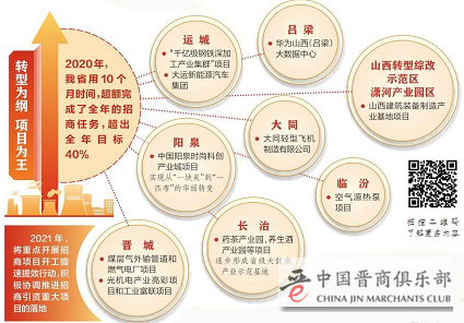 项目为王,以结果论英雄。2020年,山西省用10个月的时间,超额完成了全年的招商任务,而且超出全年目标的40%,三晋大地上招商引资的“强磁场”效应正在不断释放,为转型发展注入强劲动能。